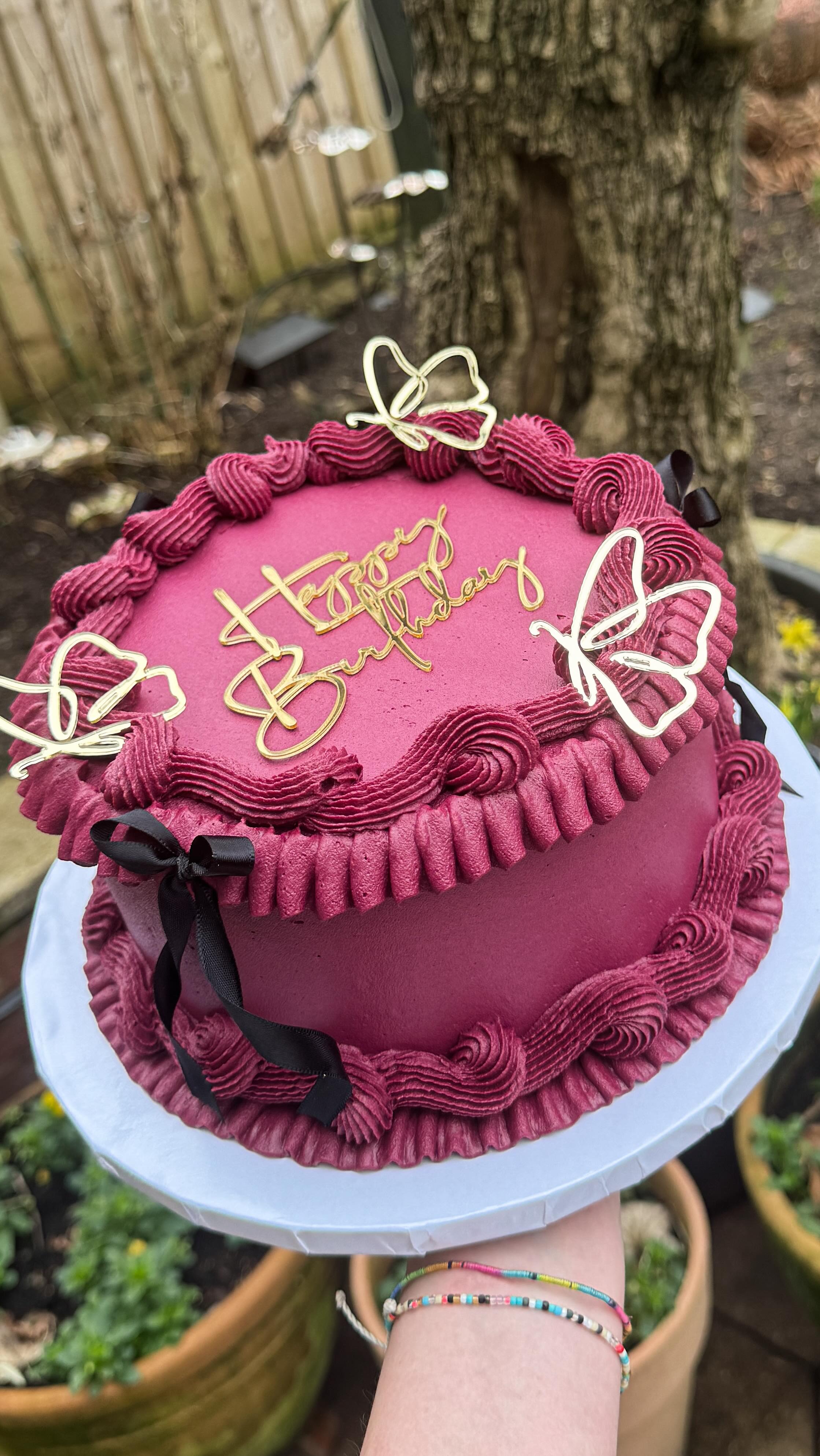 "Super impressed with my 40th and my dads 65th vegan birthday cake. We had raspberry and white chocolate and oh my, it was divine!! Beautifully decorated and worth every penny and more! Thank you Ve-Bakes!" - Carly Holmes